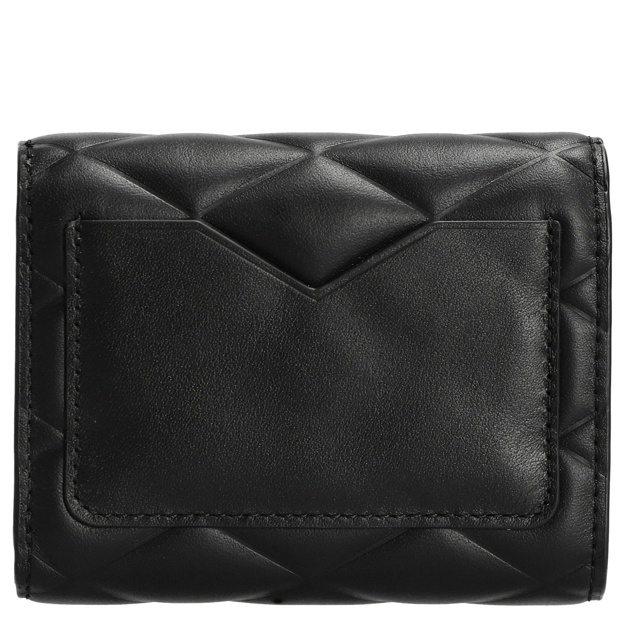 Eine elegante Geldbörse aus gestepptem Leder, die stilvollen Schutz und praktische Funktionalität vereint. Die kompakte Form in klassischem Schwarz macht sie zum idealen Accessoire für den Alltag und die Handtasche.